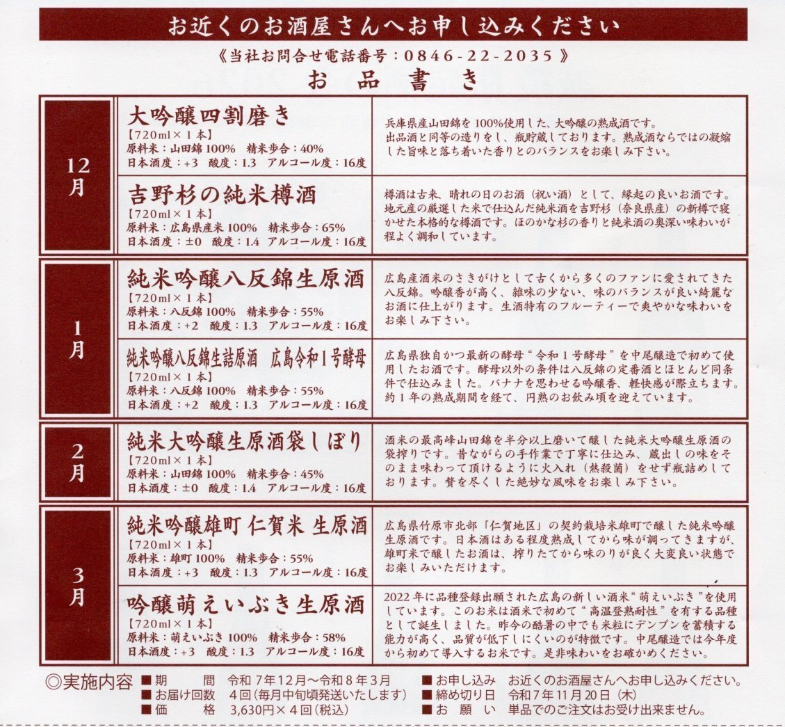 12月〜3月まで毎月厳選された日本酒が届きます。